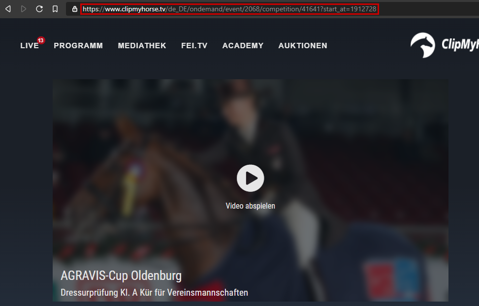 Auf eine beliebige ClipMyHorse Seite mit einem Video-Player gehen.